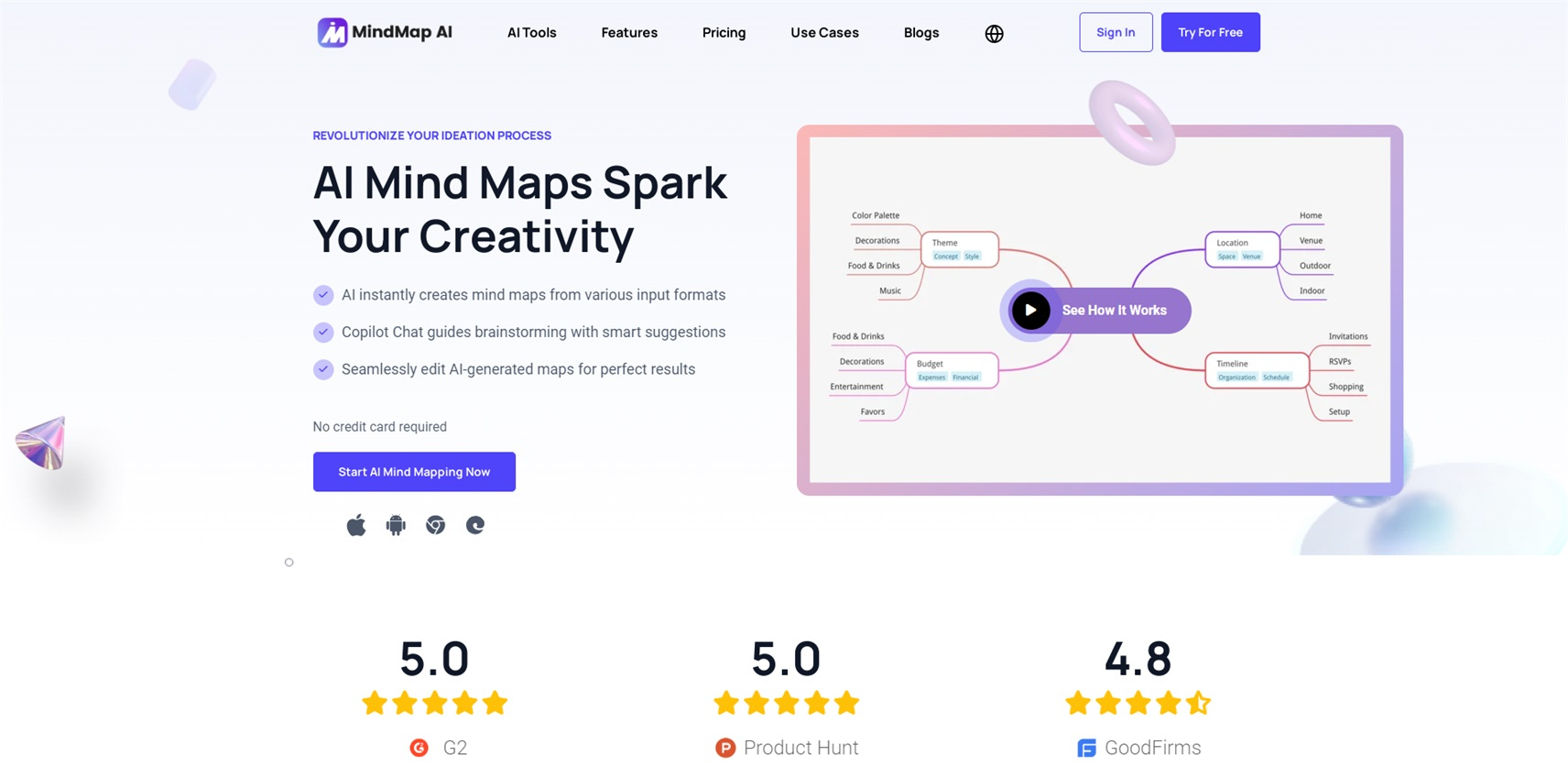 MindMap AI是人工智能思维导图生成工具,帮助您更高效地组织和视觉化他们的思维过程,能从文本、PDF、音频以及视频中提取关键点,自动构建连接紧密的导图。它不仅可以将文字信息快速转化为思维导图,还能在交互过程中提供自动延展、逻辑关联和知识归纳的功能。不同于传统的手动绘制思维导图,MindMap AI借助AI技术,可以在短时间内自动生成清晰的逻辑图谱,让复杂的内容一目了然。