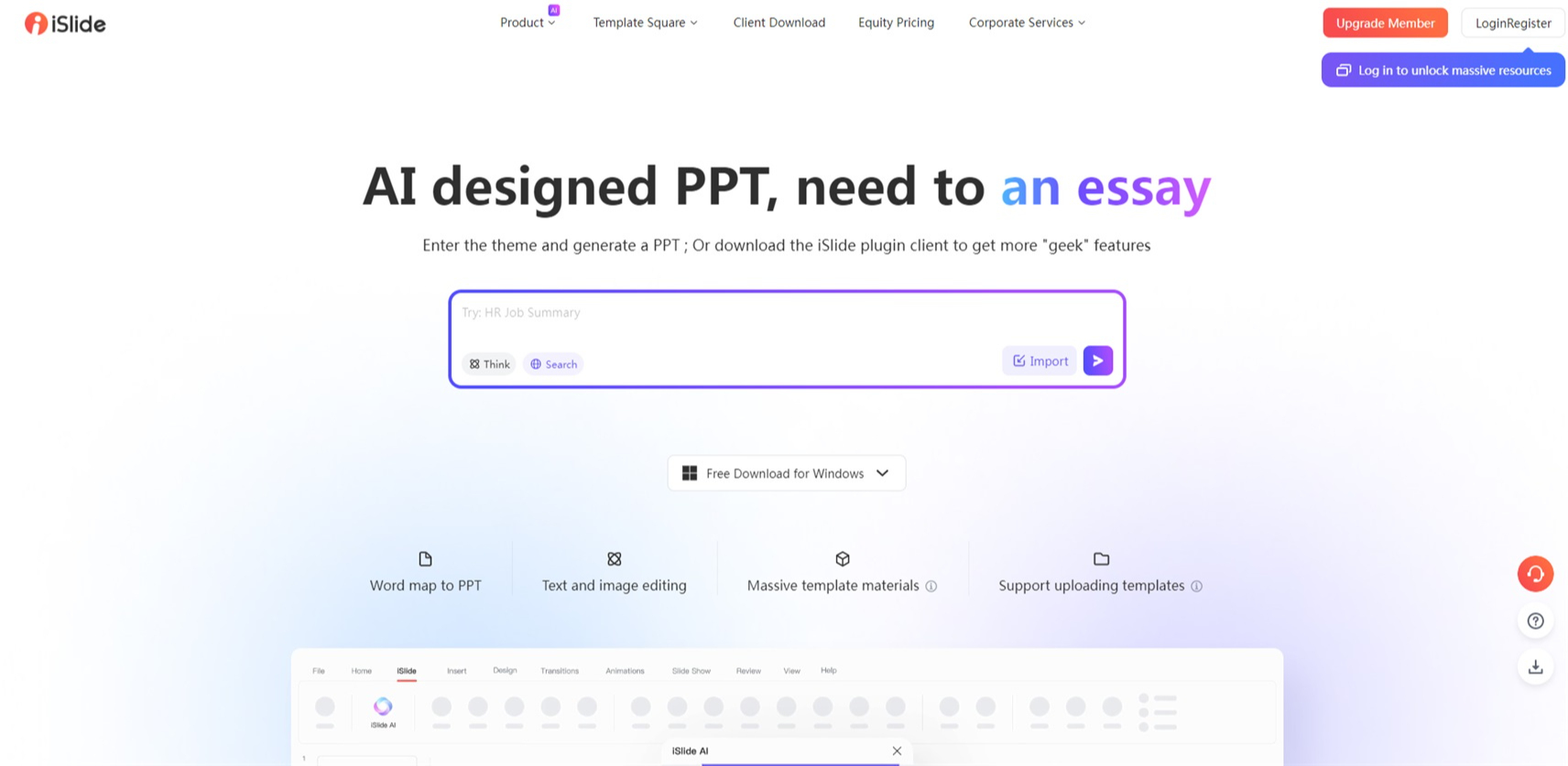 除了文档转PPT,iSlide AI还支持将PDF或图片内容转换为可编辑的PPT格式,方便用户进行二次编辑和利用。