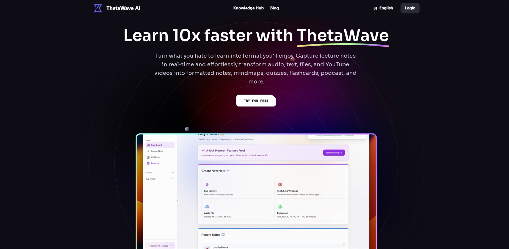 不管是录音、PDF文档、Word文件、文本内容,还是YouTube视频,Thetawave AI都能迅速转化为学习的笔记。