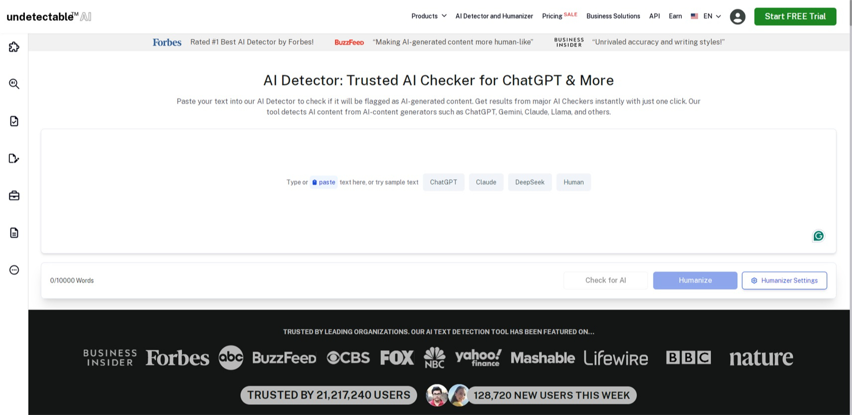用户粘贴AI生成的文本,Undetectable AI会立即对其进行重构、替换词汇、改变句式结构。